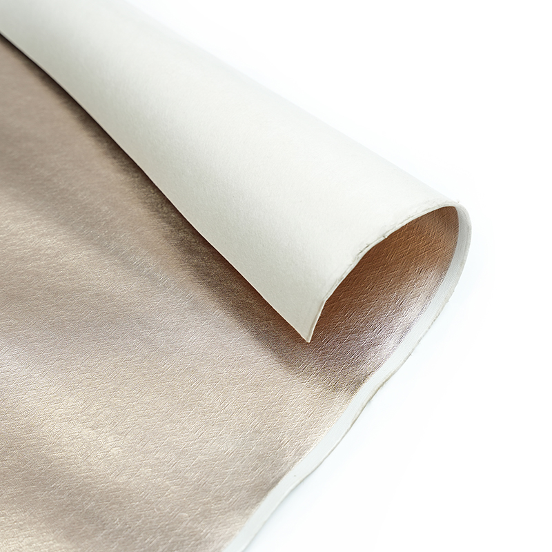 Luxusní lesklá zlatá kožená látka pro složení dekorace je harmonická směs polyvinylchloridu (PVC) a odstředěná látková podložka, která zajišťuje jak trvanlivost, tak luxusní dotek. S tloušťkou 0,9 mm zasáhne rovnováhu mezi odolností a luxusním pocitem. Materiál PVC se hodí k snadné údržbě, což z něj činí ideální volbu pro dlouhotrvající krásu v různých aplikacích.